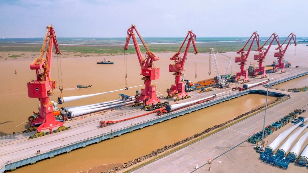 近日,射陽港區成功裝卸102米風電葉片,刷新了自身吊裝長度紀錄,為射陽港區打造風電產業特色港邁出了堅實一步。