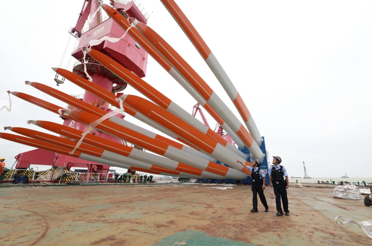 風能是一種清潔可再生能源,風力發(fā)電近年來越發(fā)受到世界各國重視。鹽城港作為華東地區(qū)大型國產(chǎn)風電葉片的主要出口港之一,風電葉片主要出口到共建“一帶一路”國家。此次共起運20套60件風電葉片及其附屬配件,其中葉片長75.8米,貨物總體積超6萬余立方米,總價值約6000萬元,是中國專門為國際市場(印度)需求研發(fā)的陸上風電設備。據(jù)鹽城出入境邊防檢查站統(tǒng)計,2024年鹽城港射陽港區(qū)累計完成風電裝備裝卸量936.85萬噸,同比增長23.67%,外貿(mào)風電完成19.01萬噸,同比增長100%。