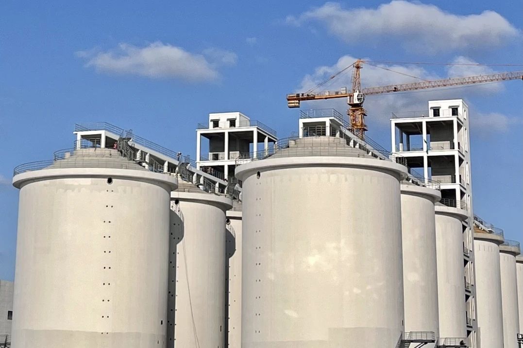 據(jù)介紹,淺圓倉單體是項(xiàng)目建設(shè)的關(guān)鍵點(diǎn),也是重難點(diǎn),建成后項(xiàng)目周轉(zhuǎn)貨物可達(dá)80萬噸,是濱海港區(qū)規(guī)模最大的儲(chǔ)備糧庫項(xiàng)目。施工過程中,項(xiàng)目團(tuán)隊(duì)采用了淺圓倉滑模施工工藝,在圓周均勻布置46個(gè)油壓千斤頂,推動(dòng)模板系統(tǒng)整體緩慢滑升,全時(shí)段開展邊滑升邊進(jìn)行倉壁的鋼筋綁扎和混凝土澆筑作業(yè),在持續(xù)作業(yè)中實(shí)現(xiàn)倉壁一次成型。