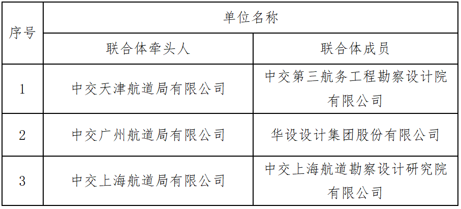 根據(jù)《濱海港區(qū)挖入式港池清理改造工程設(shè)計(jì)施工總承包BHGC-EPC標(biāo)段招標(biāo)文件》評標(biāo)辦法,經(jīng)評標(biāo)委員會評審,以下單位入圍定標(biāo)候選人: