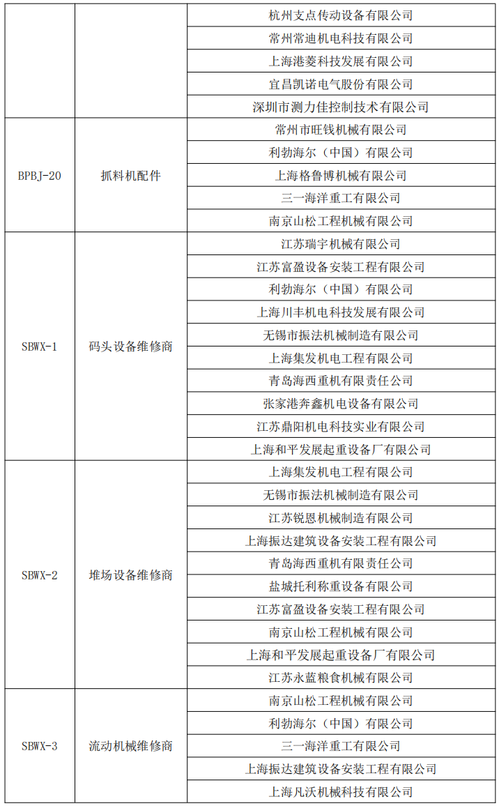 根據招標投標的有關法律、法規、規章和本項目招標文件的規定,2023年港口設備維修材料備品備件合格供應商預選名錄、2023年港口設備維修服務供應商預選名錄開標和評標工作已經結束,入圍的預選單位已經確定。現將入圍的預選單位名單公示如下: