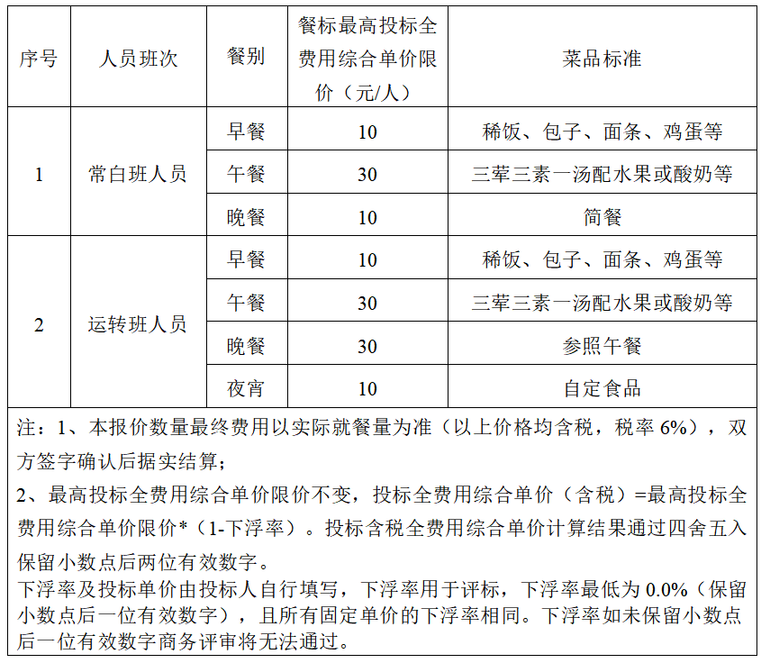 (6)招標范圍:鹽城港響水港區(qū)的常駐辦公地點包括響水港區(qū)機關、響水港務公司、響城港務公司及聯(lián)檢大樓,各需設立獨立食堂。響水港區(qū)每日就餐總人數(shù)約為180人,其中,機關食堂日均就餐人數(shù)約55人,響水港務公司食堂日均就餐人數(shù)約65人,聯(lián)檢大樓食堂日均就餐人數(shù)約35人,響城港務公司食堂日均就餐人數(shù)約25人。為了生產運營需要,每個食堂均需獨立運營。