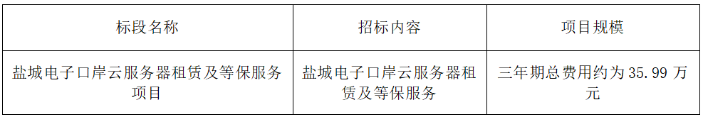 一、?鹽城電子口岸有限公司?就鹽城電子口岸云服務(wù)器租賃及等保服務(wù)項(xiàng)目進(jìn)行公開招標(biāo),誠邀合格的投標(biāo)人前來報(bào)名參加。