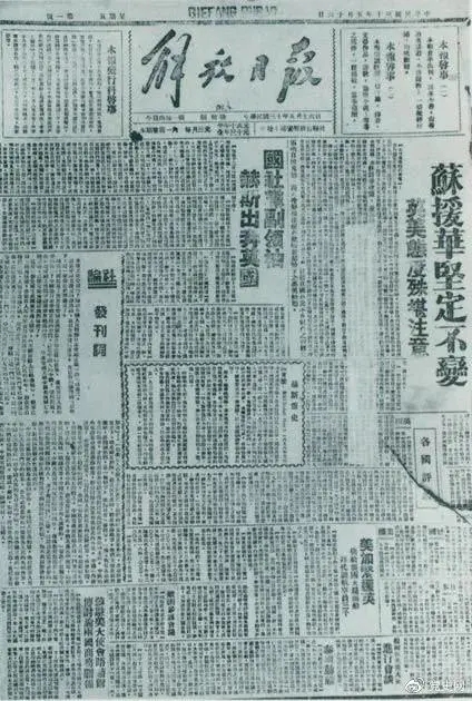 圖為1941年5月16日在延安創刊的中共中央機關報《解放日報》。