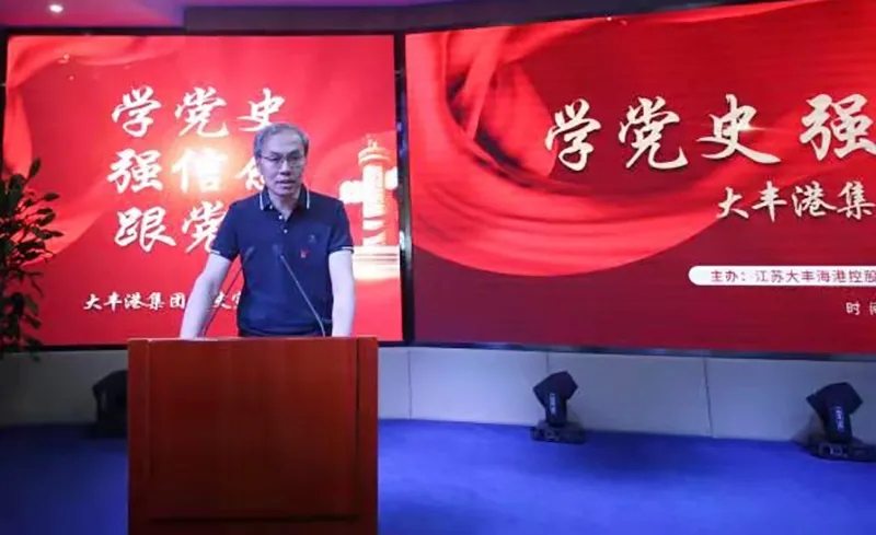 6月5日上午,大豐港區開展“學黨史、強信念、跟黨走”黨史宣講活動。大豐港區黨委副書記、董事、總經理繆存美,大豐港區領導班子全體、港區機關全體和各子公司中層副職以上干部參加活動。