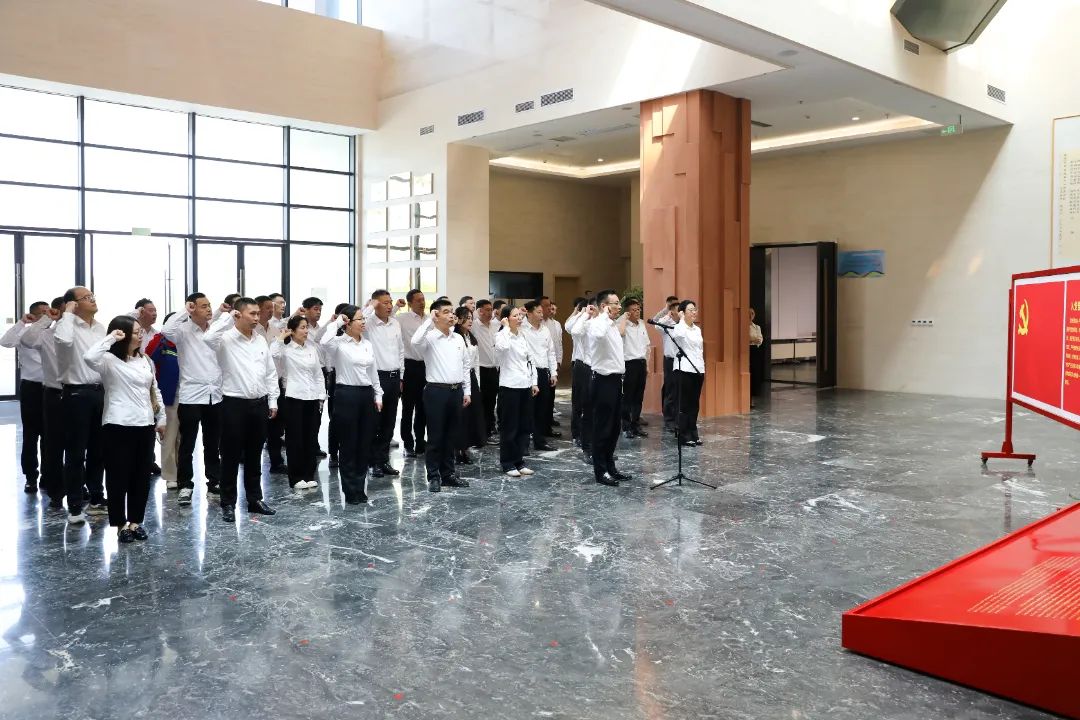 “我志愿加入中國共產(chǎn)黨,擁護黨的綱領...” 在莊嚴的黨旗下,全體黨員重溫入黨誓詞,鏗鏘誓言在紀念館內(nèi)久久回蕩。這誓言不僅是對入黨初心的回溯,更是對當下及未來為黨和人民事業(yè)拼搏奮斗的莊重承諾。