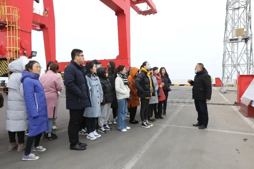 濱海港區(qū)單位女職工在生產(chǎn)經(jīng)營部工作人員的帶領(lǐng)下,學(xué)習(xí)門機進行裝卸作業(yè),了解碼頭從船舶靠岸的前期準備到靠泊后的裝卸作業(yè)的全部流程。