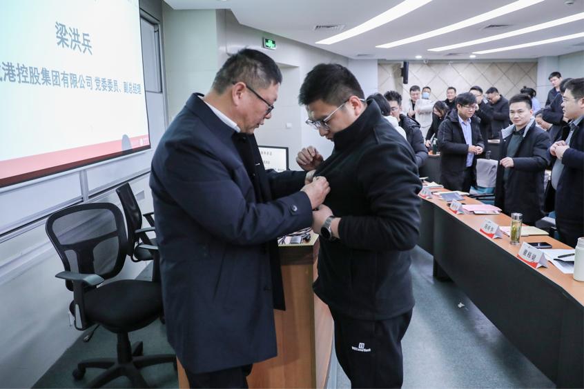 在開班儀式上,陳剛、梁洪兵親手為學(xué)員代表佩戴上海交通大學(xué)校徽,這標(biāo)志著學(xué)員們正式加入上海交通大學(xué)大家庭,開啟全新的學(xué)習(xí)旅程。