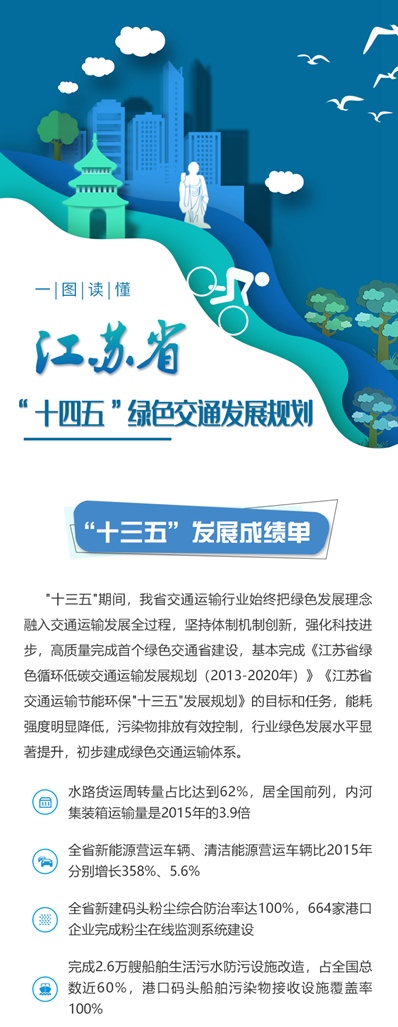 至“十四五”末,全面實現(xiàn)綠色能源消費(fèi)占比、岸電使用率、鐵路和水路運(yùn)輸周轉(zhuǎn)量占比、綠色出行比例“4提升”,營運(yùn)貨車、營運(yùn)貨船、港口生產(chǎn)碳排放強(qiáng)度和營運(yùn)船舶氮氧化物排放總量“4下降”——近日,省交通運(yùn)輸廳正式印發(fā)《江蘇省“十四五”綠色交通發(fā)展規(guī)劃》(以下簡稱《規(guī)劃》),明確提出“十四五”期間全省綠色交通發(fā)展按照“11478”的思路開展,實現(xiàn)“4升4降”,形成與資源環(huán)境承載力相匹配、與生產(chǎn)生活生態(tài)相協(xié)調(diào)的交通運(yùn)輸發(fā)展新格局,有效支撐我省碳達(dá)峰碳中和目標(biāo)如期實現(xiàn)。