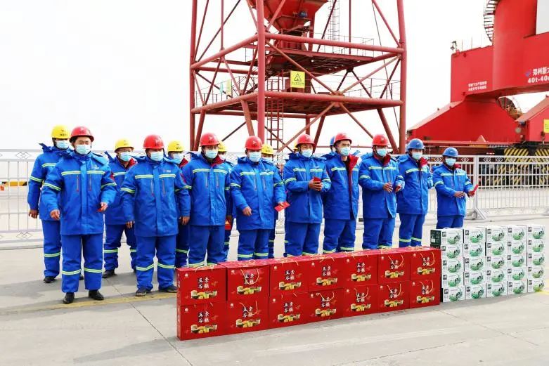 在大豐港區(qū)集裝箱碼頭,周正雄和堅(jiān)守崗位的工作人員一一握手,感謝大家的默默奉獻(xiàn),為保障港口安全平穩(wěn)運(yùn)行而付出的努力,并向他們送上慰問品。他說,去年以來,集團(tuán)統(tǒng)籌做好安全生產(chǎn)和疫情防控各項(xiàng)工作,并取得了良好的業(yè)績(jī),這離不開全體員工的共同努力和無私奉獻(xiàn),離不開員工家屬對(duì)集團(tuán)的信任和關(guān)心,更離不開家屬們對(duì)員工的支持和理解。希望全體員工按照集團(tuán)黨委的要求,切實(shí)利用好“早晨會(huì)、晚匯報(bào)”這一工作模式,對(duì)晨會(huì)的形式和內(nèi)容進(jìn)行再融合再提升,更加全身心地投入工作,全力打造出一支港口鐵軍隊(duì)伍,為鹽城港人樹立榜樣,全面激活港口活力,增強(qiáng)發(fā)展后勁,為完成全年和各項(xiàng)工作目標(biāo)而繼續(xù)努力、繼續(xù)奮斗。