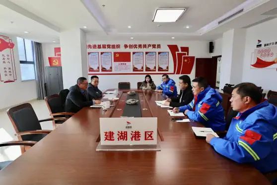 當(dāng)天下午,受集團(tuán)黨委委托,集團(tuán)相關(guān)部門(mén)、陸港集團(tuán)主要負(fù)責(zé)同志前往建湖港區(qū),看望慰問(wèn)堅(jiān)守在一線工作崗位的工作人員,并向他們送上慰問(wèn)品。隨后舉行座談會(huì),就港區(qū)生產(chǎn)經(jīng)營(yíng)和發(fā)展展開(kāi)交流。