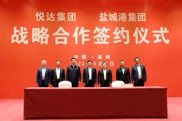 3月8日,悅達集團與鹽城港集團戰略合作框架協議簽約儀式在鹽舉行。悅達集團黨委書記、董事長張乃文,集團黨委書記、董事長、總經理周正雄,悅達集團黨委副書記楊玉晴,集團黨委委員、紀委書記周旭東,集團黨委委員、董事、副總經理丁安廣出席活動并鑒簽。悅達集團黨委委員、常務副總經理徐兆軍,集團黨委委員、董事、副總經理夏立新代表合作雙方上臺簽約。
