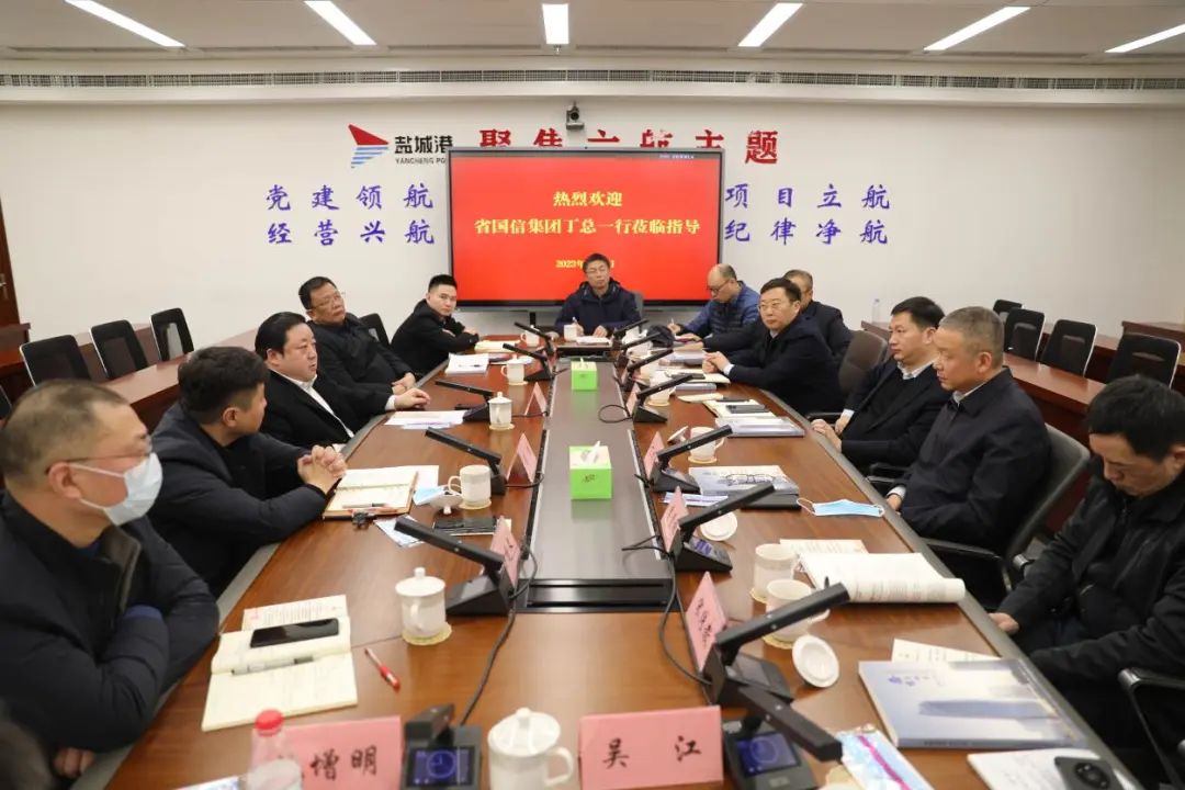 周正雄對(duì)丁旭春一行的到訪表示歡迎,并對(duì)國信集團(tuán)在鹽城港集團(tuán)發(fā)展過程中給予的關(guān)心和支持表示感謝,并介紹了鹽城港相關(guān)情況。他說,2020年,市委、市政府審時(shí)度勢(shì),將全市海港和內(nèi)河港區(qū)融為一體,按照規(guī)劃、投資、建設(shè)、管理、運(yùn)營一體化要求,實(shí)現(xiàn)了海河聯(lián)運(yùn)一體化發(fā)展格局,為全市港航事業(yè)更優(yōu)質(zhì)、更高質(zhì)量發(fā)展奠定堅(jiān)實(shí)基礎(chǔ)。集團(tuán)成立以來,緊抓發(fā)展機(jī)遇,于2021年首次躋身全國億噸大港行列,2022年貨物吞吐量增幅及集裝箱量增幅分別位列全國54個(gè)沿海港口的第一和第二位,進(jìn)一步打響了鹽城港的名氣和品牌。與此同時(shí),集團(tuán)緊抓江蘇沿海發(fā)展等契機(jī),聚焦“十四五”末達(dá)到2億噸吞吐量和1.5億噸能級(jí)的目標(biāo),按照不搞“三無一不”投資的要求,持續(xù)在港口、航道、堆場(chǎng)、倉儲(chǔ)等領(lǐng)域加大投資,系統(tǒng)性推進(jìn)實(shí)施港口基礎(chǔ)設(shè)施建設(shè),為集團(tuán)實(shí)現(xiàn)高質(zhì)量發(fā)展夯實(shí)基礎(chǔ)。省國信集團(tuán)作為江蘇省內(nèi)大型國有企業(yè),在項(xiàng)目投資和建設(shè)方面具有較強(qiáng)的優(yōu)勢(shì),希望雙方充分發(fā)揮各自資源優(yōu)勢(shì),進(jìn)一步強(qiáng)化溝通協(xié)作,形成工作合力,加快推進(jìn)各項(xiàng)目前期手續(xù)辦理,推動(dòng)鹽城港射陽港區(qū)5萬噸級(jí)航道和5萬噸級(jí)碼頭等項(xiàng)目落地實(shí)施,確保項(xiàng)目盡快開工,早日投產(chǎn)達(dá)效。