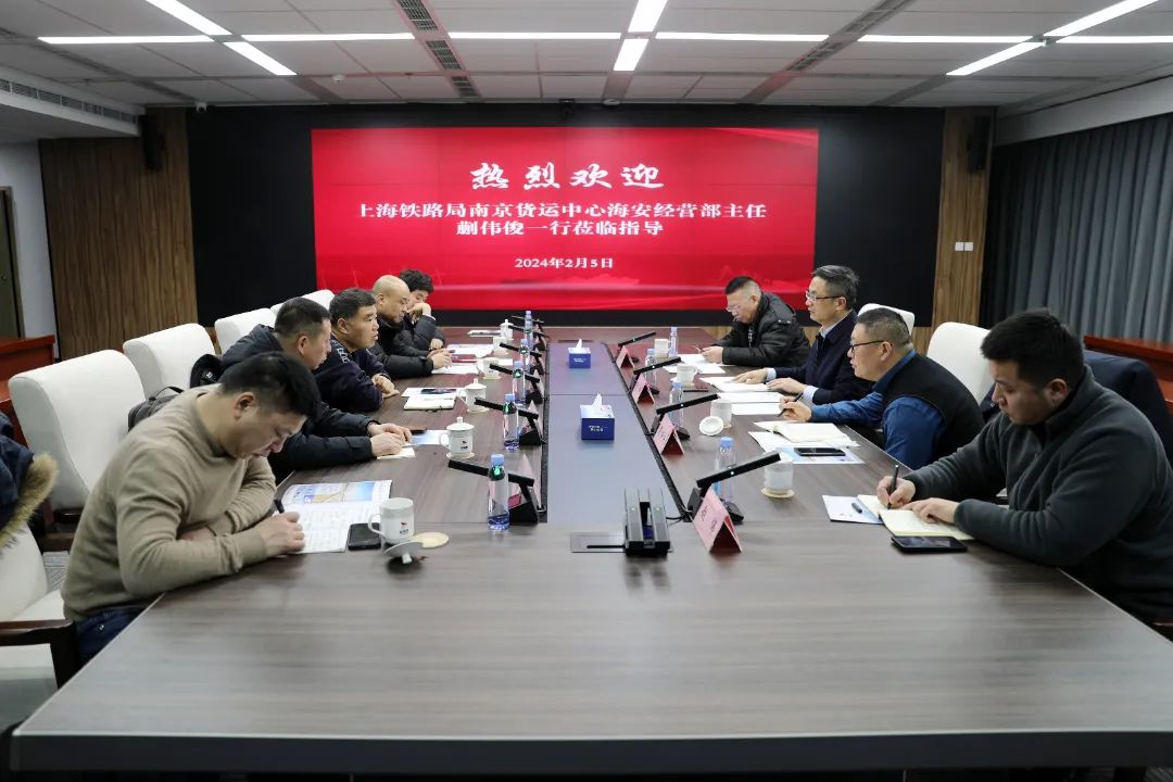 2月5日,上海鐵路局南京貨運中心海安經營部主任蒯偉俊率隊拜訪集團,就建湖縣快捷鐵路貨場資質辦理、后期運營管理等事宜進行交流洽談,集團黨委副書記、董事、總經理陸帥接待蒯偉俊一行。集團黨委委員、副總經理梁洪兵,南京物流中心營銷部副科長姜建等參加。