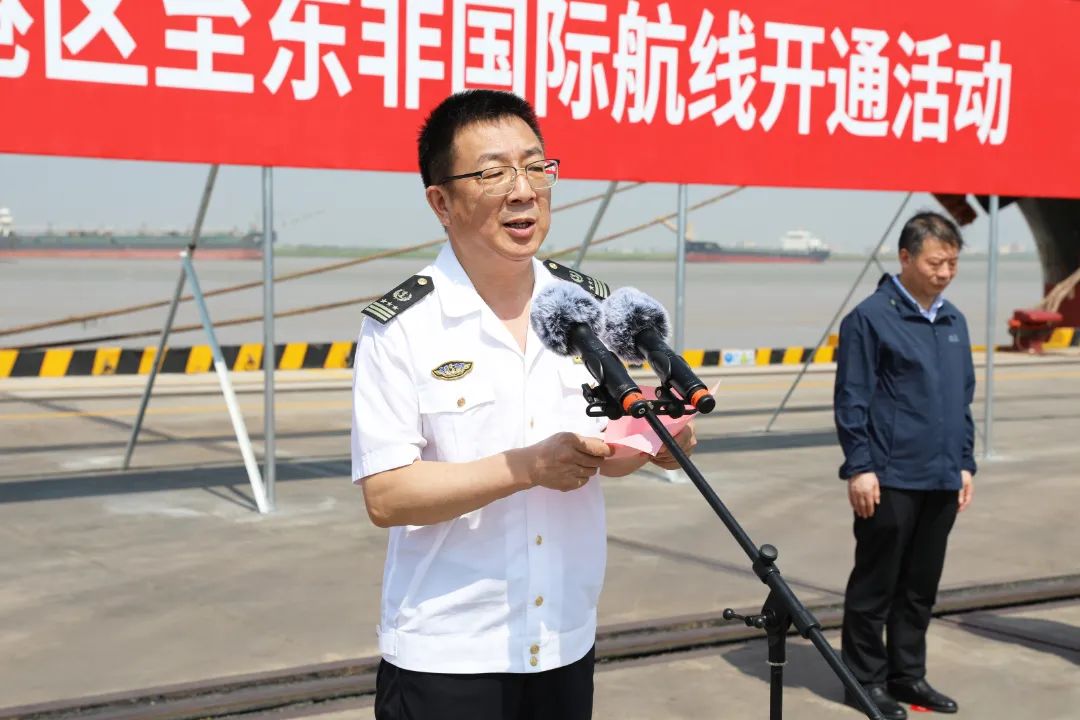 市交通運輸局黨委書記葛春寬,鹽城海事局局長程欣,鹽城出入境邊防檢查站站長李興華,鹽城海關二級高級主辦李健,鹽城港集團黨委副書記、董事、總經理陸帥出席活動。相關單位及部門負責同志,船貨代公司及相關企業代表等參加。