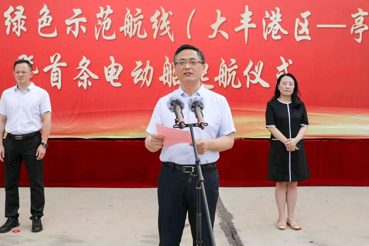 陸帥表示,綠色發(fā)展是高質(zhì)量發(fā)展的底色,綠色示范航線的開(kāi)通及電動(dòng)船的啟用是落實(shí)集團(tuán)關(guān)于構(gòu)建綠色、生態(tài)、智慧、平安、美麗“五新示范港”的有力抓手,是鹽城港深入輻射淮河生態(tài)經(jīng)濟(jì)帶、全力打造淮河生態(tài)經(jīng)濟(jì)帶出海門戶的生動(dòng)實(shí)踐,為實(shí)現(xiàn)河海聯(lián)運(yùn)一體化發(fā)展提供了有力支撐,為落實(shí)“碳達(dá)峰、碳中和”等中長(zhǎng)期戰(zhàn)略目標(biāo)奠定了堅(jiān)實(shí)基礎(chǔ)。集團(tuán)全體干部職工要以今天的開(kāi)航為新起點(diǎn),發(fā)揚(yáng)開(kāi)拓創(chuàng)新“拓荒牛”精神,主動(dòng)下好淮河戰(zhàn)略的“先手棋”“制勝棋”“長(zhǎng)遠(yuǎn)棋”,充分發(fā)揮江蘇獨(dú)特的水韻之美、水運(yùn)之利,為腹地企業(yè)提供更加經(jīng)濟(jì)、便捷、可靠的物流服務(wù),積極策應(yīng)綠色低碳發(fā)展新趨勢(shì),全力在發(fā)展新質(zhì)生產(chǎn)力進(jìn)程中尋求新突破,接續(xù)奮斗、再立新功,奮力為鹽城勇當(dāng)全省發(fā)展新質(zhì)生產(chǎn)力重要陣地“碳路先鋒”作出更大貢獻(xiàn)。