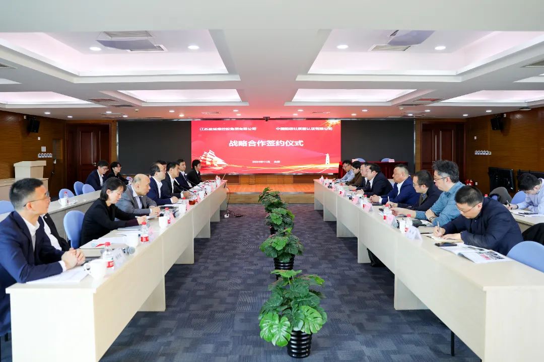 田偉對周正雄一行的到來表示歡迎,并介紹了認證公司相關情況。他說,中國船級社質量認證有限公司(CCSC)是中國船級社(CCS)承擔陸上檢服務認證檢驗與認證業務的專門機構,近年來聚焦港口、船舶、新能源等領域,業務范圍包括管理體系認證、產品認證、風險管理集裝箱檢驗、綠色低碳、安全業務等方面。雙方發展理念、業務領域高度契合,有著廣闊的合作空間,CCSC將以此次協議簽訂為契機,緊密圍繞鹽城港發展實際,開展全方位合作,合力推動雙方做強做優做大,實現更高質量發展。