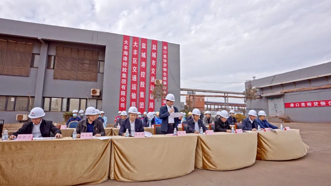 10月28日,市交通運輸局在鹽城港大豐港區(qū)旗下江蘇中南匯石化倉儲有限公司組織開展2021年度危險化學品安全生產事故應急演練。市港口管理局副局長、市交通運輸局黨委委員趙飛,集團黨委委員、董事、副總經理陳正華,以及大豐區(qū)交通運輸局、港區(qū)安監(jiān)局等單位負責同志出席本次演練。