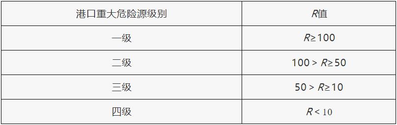 表4 危險(xiǎn)貨物重大危險(xiǎn)源級(jí)別和R值的對應(yīng)關(guān)系