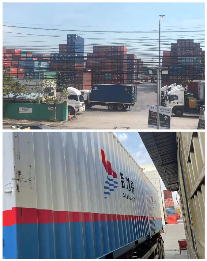 船舶停靠在湄南河畔BMT碼頭,一輛輛裝卸貨車駛向堆場,來往車輛絡繹不絕,穿梭在港區與智慧物流園區中,一眼就能看見鹽城港自備箱靚麗的“身影”。