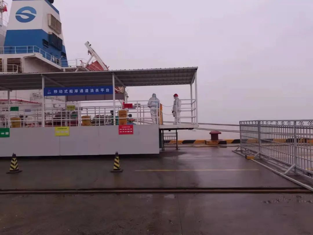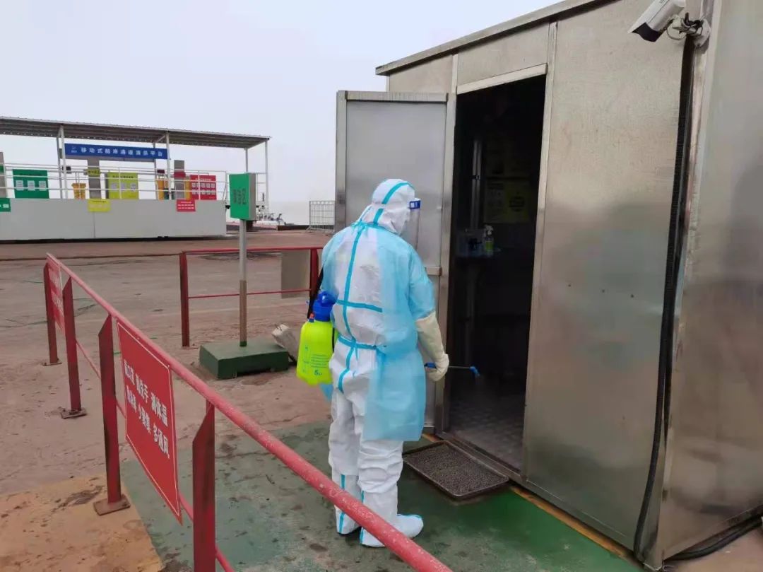 嚴(yán)格執(zhí)行人員準(zhǔn)入制度,進(jìn)出人員需佩戴口罩,并進(jìn)行體溫測(cè)量、信息登記、蘇康碼及行程碼核查。安排專人定時(shí)對(duì)碼頭登梯口、防疫值守崗?fù)ぁ⒚撔秴^(qū)、專班集中居住區(qū)、專班人員運(yùn)輸車(chē)輛、電梯、門(mén)把手、食堂等重點(diǎn)場(chǎng)所進(jìn)行清潔消毒。碼頭設(shè)立固定的巡查人員24小時(shí)巡查,同時(shí)外輪靠泊期間,嚴(yán)格落實(shí)卡口、登輪梯口24小時(shí)專人值守,強(qiáng)化梯口管理,對(duì)所有登輪人員進(jìn)行核實(shí)登記,監(jiān)督人員防護(hù)措施落實(shí)情況,凡是通過(guò)梯口人員,必須提供48小時(shí)內(nèi)有效核酸檢測(cè)證明、疫苗接種證明。