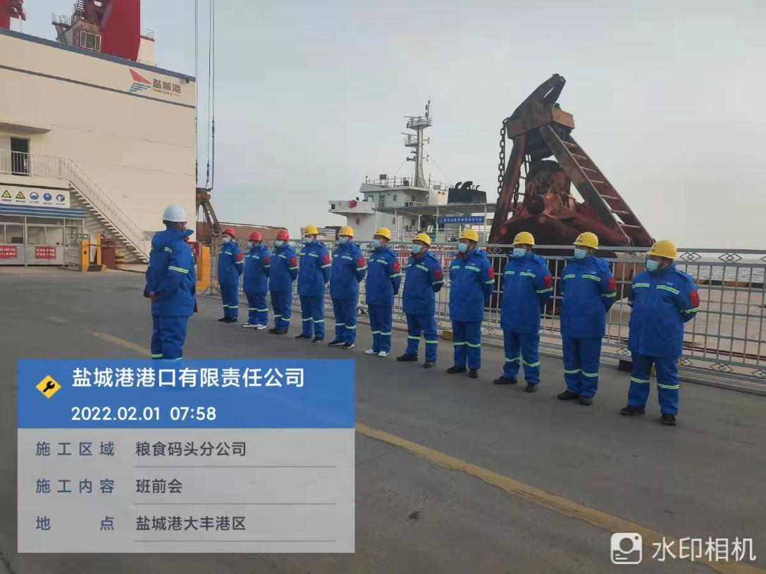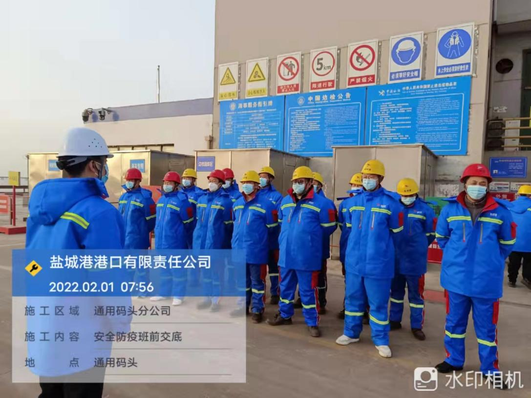 農(nóng)歷正月初一,鹽城港大豐港區(qū)港口公司各子(分)公司在碼頭(作業(yè)現(xiàn)場(chǎng)),如往常一樣準(zhǔn)點(diǎn)開始作業(yè)班前會(huì),進(jìn)行安全生產(chǎn)、疫情防控工作交底。