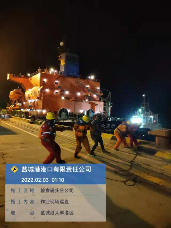 農(nóng)歷正月初三,鹽城港大豐港區(qū)港口公司碼頭共停泊4條外貿(mào)船作業(yè),公司安全管理人員進(jìn)行了24小時(shí)不間斷巡查。