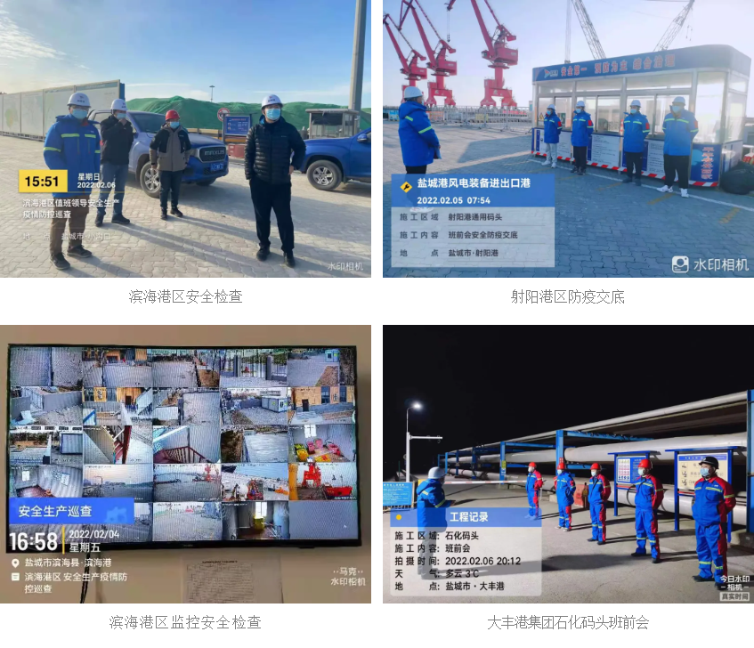 1.安全生產、疫情防控工作常態化持續開展。鹽城港港口公司:春節期間安全、疫情防控日常巡查,班前會防疫交底,防疫消毒;濱海港區:春節期間安全、疫情防控日常巡查,班前會,碼頭設備作業前安全檢查;大豐港集團:春節期間安全、疫情防控日常巡查,防疫消殺;集裝箱集團:春節期間安全、疫情防控日常巡查,碼頭設備作業前安全檢查,抓好了日常消殺工作;實業集團:春節期間安全、疫情防控日常巡查;陸港集團:春節期間安全、疫情防控日常巡查,作業現場巡查,日常消殺;射陽港區:春節期間安全、疫情防控日常巡查,安全、疫情防控日常巡查,設備安全檢查,夜間安全巡查;響水港區:春節期間安全、疫情防控日常巡查,對作業區、辦公區防疫消殺;鹽城港保稅物流公司:春節期間安全、疫情防控日常巡查,組織作業區安全巡查,日常消殺工作;鹽城港項目公司:春節期間安全、疫情防控日常巡查,組織春節復工慰問活動。
