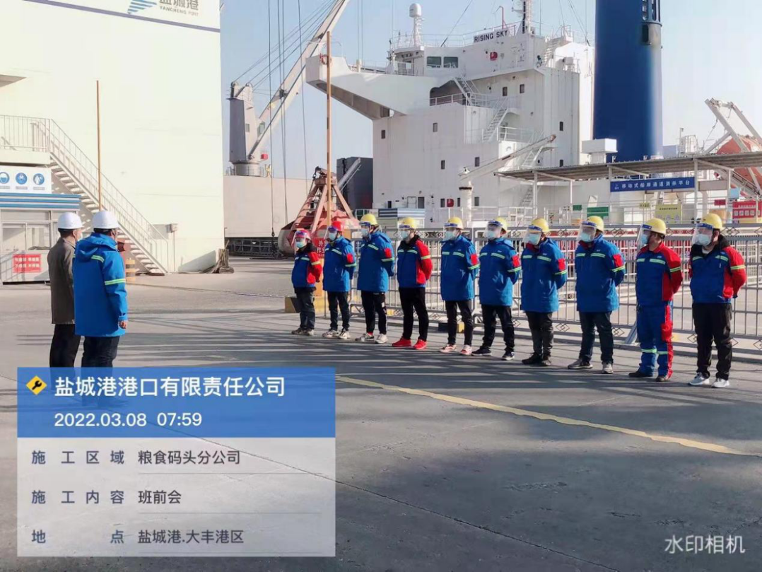 港口公司通用碼頭分公司充分發揮碼頭專業優勢,不斷優化人員結構,定人適崗,改進工作流程、提高工作效率并做好疫情防控和安全事項。從每天的早晨會做起,杜絕流于形式的班前會,做到五個一:“每日一點名”、“每日一問”、“每日一總結”、“每日一次傳達上級精神”、“每日一次安全防疫宣講”,真正為碼頭安全管理工作奠定基礎,為鹽城港高質量發展注入不竭動力。