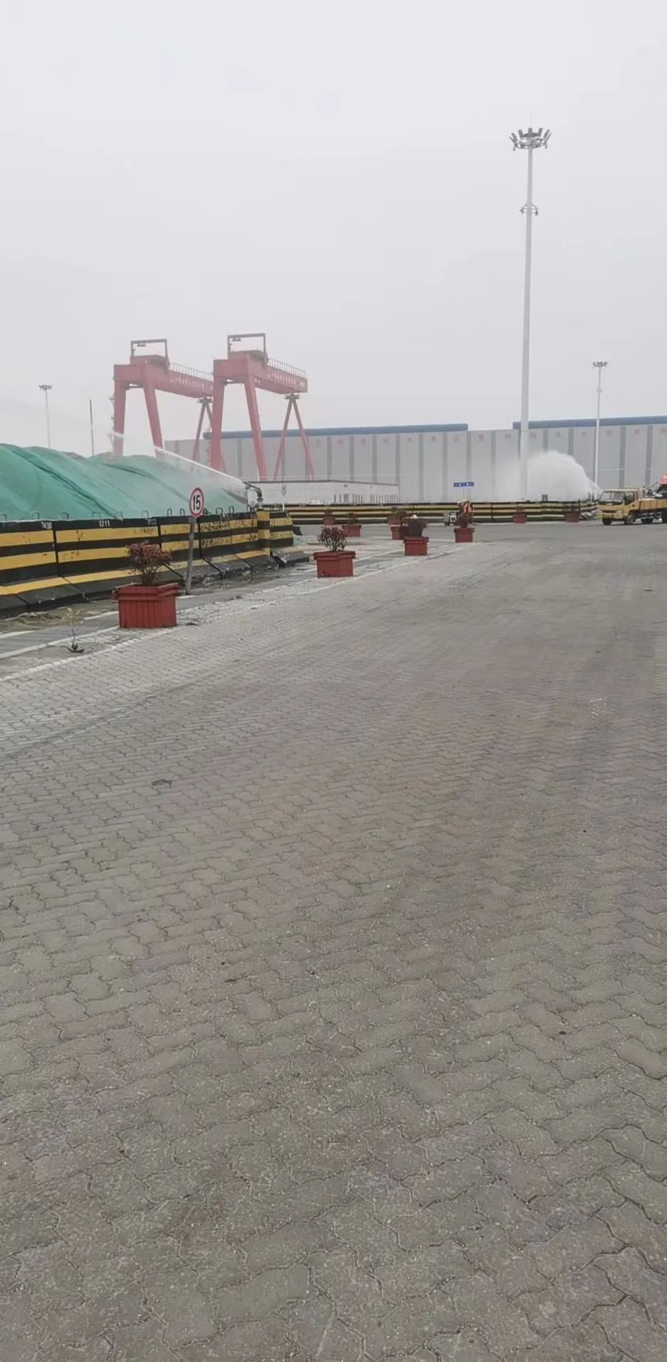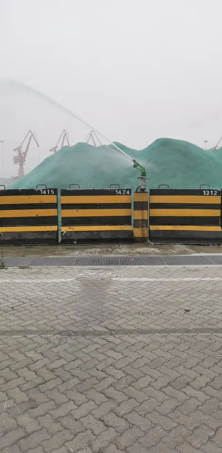 (倉儲部及時(shí)開啟堆場噴淋設(shè)備,對苫蓋貨物進(jìn)行抑塵噴灑)