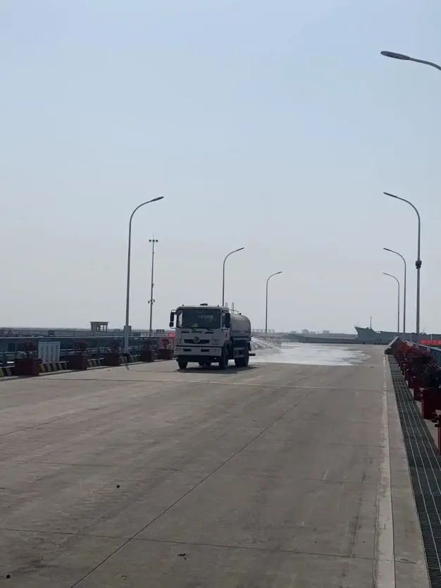 疫情形勢依然嚴(yán)峻,響水港區(qū)在抓好疫情防控的同時不放松綠色生態(tài)港口建設(shè)。為提高噴淋系統(tǒng)的噴射覆蓋區(qū)域,公司對噴淋設(shè)施的噴槍頭進(jìn)行改造,由原來的水柱噴射改為扇形噴射,改造完成之后將大幅度提高噴淋面積。此外,港區(qū)防風(fēng)網(wǎng)正在建設(shè)當(dāng)中,待防風(fēng)網(wǎng)建成投入使用后,將進(jìn)一步提高響水港區(qū)場地粉塵治理水平。