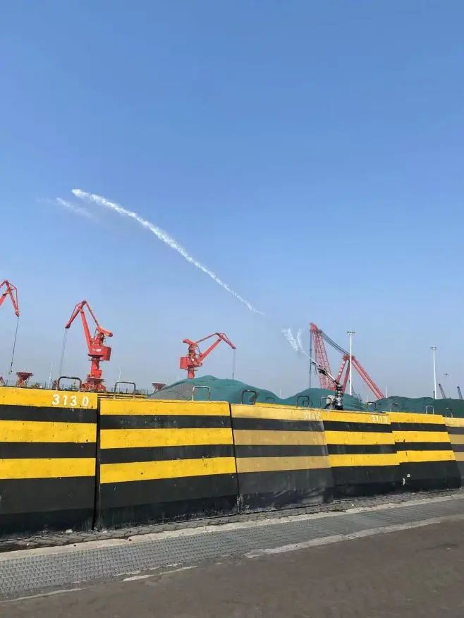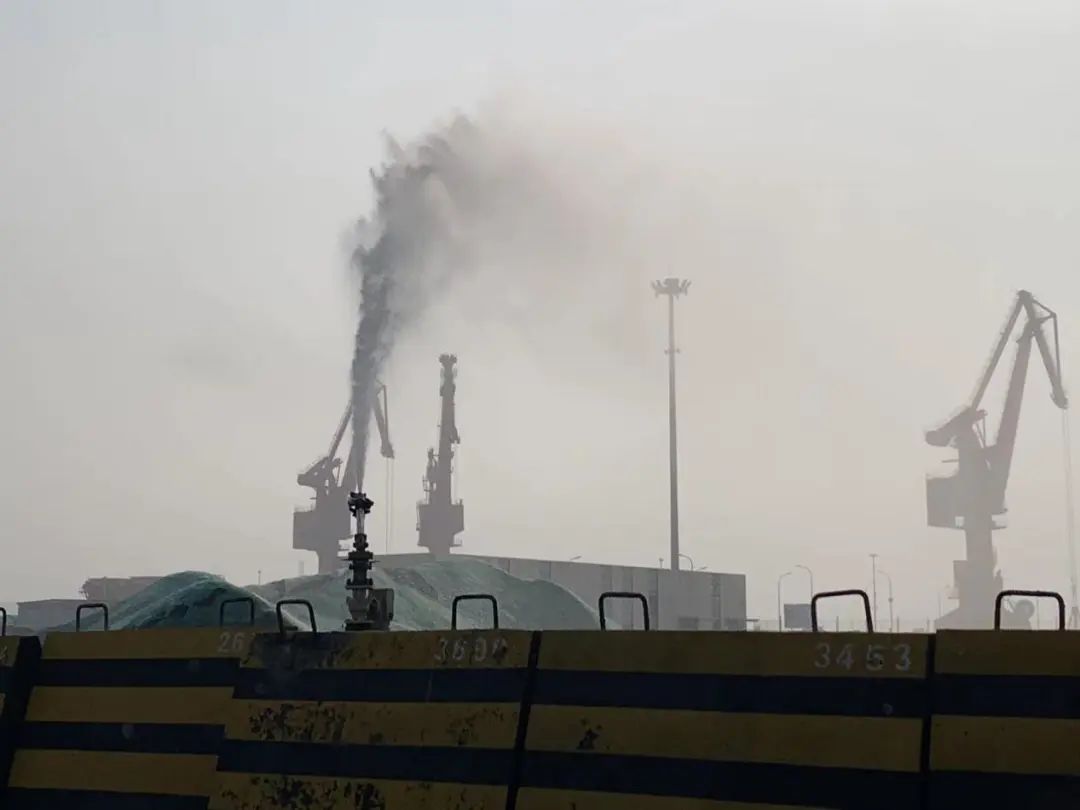 響水港區(qū)堆場建設(shè)有5套粉塵檢測系統(tǒng),60個場地噴淋設(shè)施,定時對貨堆進(jìn)行噴淋降塵。為規(guī)范公司日常管理,制定了《生產(chǎn)性粉塵綜合治理制度》,為堆場貨物進(jìn)行百分百苫蓋,并通過碼頭面、堆場、道路清掃及灑水等措施減少揚(yáng)塵。