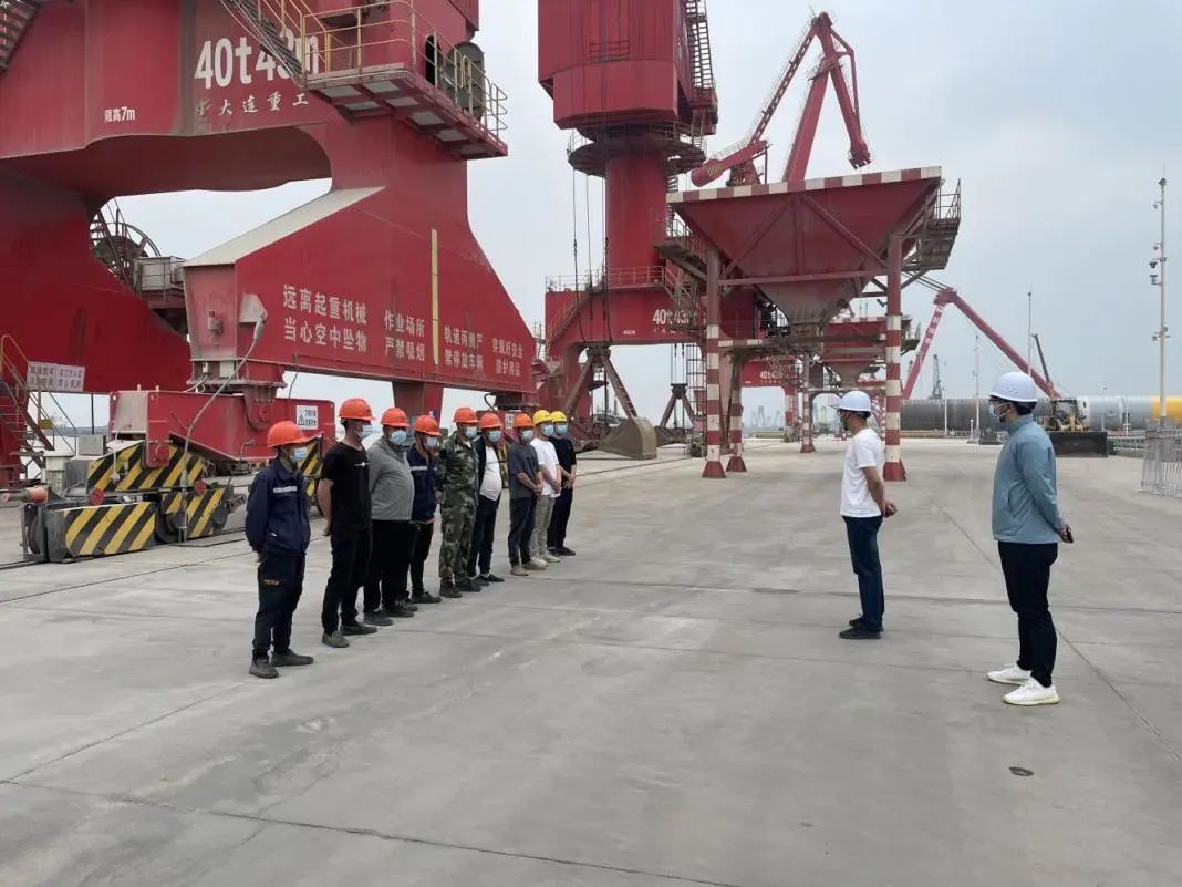 重件碼頭分公司組織開展門機作業故障排除應急演練。演練模擬門機作業在熟料入庫時,在入料斗時發現提升機處冒出大量黑色浮塵的場景。門機司機發現險情,報告于現場調度,一系列的故障排除措施有序開展,維修人員查找故障為較多大塊凝固體在提升機中導致無法作業,隨即清理障礙,重新啟動機器。此次應急演練,充分展現了作業人員在碼頭大型裝卸設備作業的安全應急能力以及后續影響處理能力。