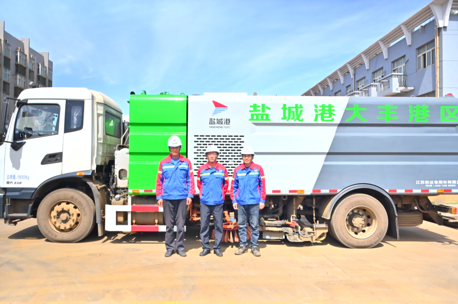 Hi!大家好。我是來自鹽城港港口公司的一臺環保洗掃車,別看我和普通環保車的外觀差不多,我的工作任務可和它們不一樣,我每天要對鹽城港大豐港區道路進行洗掃作業和防塵抑塵。我是清潔工作中的好幫手,每天都讓港區恢復煥然一新。