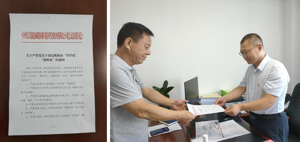 公司紀檢主動作為、靠前監(jiān)督,進一步暢通信訪舉報渠道,公開舉報方式,及時收集處置群眾反映的問題線索。強化監(jiān)督執(zhí)紀問責,通過專項檢查、明查暗訪等方式,加大對違規(guī)操辦、參加“升學宴”“謝師宴”等違紀違規(guī)問題的監(jiān)督檢查力度,對有令不行、有禁不止的頂風違紀行為,發(fā)現一起查處一起,絕不姑息,對典型案例一律通報曝光,做到以案明紀、形成震懾。同時,嚴格落實“一案雙查”制度,對頂風違紀造成不良影響的,既追究當事人責任,也追究相關負責人責任。