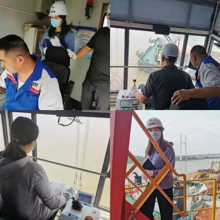 在灌江碼頭一位年輕女孩在門機駕駛室里認真研學。我們都問她:“你一個女孩在這么熱的天里來學門機操作,不怕曬黑嗎?”。她總是笑著說:“因為我想做港口最美‘炎’值啊”。從響水港區綜合部到一線,掛職人員吳亦凡給灌江碼頭增添了一抹靚麗色彩。從集團機關來的掛職人員宋昊也說:“以前只是坐在辦公室里,現在來到一線感覺真的不一樣。通過學習熟悉了港口的設備以及操作流程,我的工作思路更加開闊了。我會好好珍惜此次機會”。師傅們通過理論與實踐相結合的方式傳授不同貨種的作業經驗,將多年來記錄的工作筆記以及遇到的各類門機故障整理分享給徒弟們。借助師傅的“技術寶典”,掛職人員吳亦凡、宋昊很快就掌握了門機的結構原理以及操作方法。