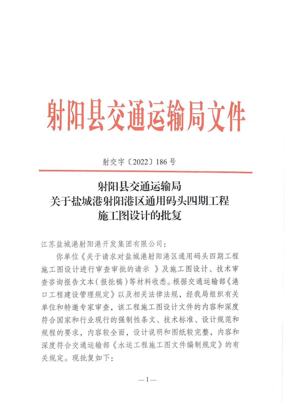 8月30日,鹽城港射陽港區(qū)通用碼頭四期工程項目初步設(shè)計和施工圖設(shè)計取得正式批復(fù)。至此,該項目已完成所有前期手續(xù),為項目的正式開工奠定了堅實的基礎(chǔ)。