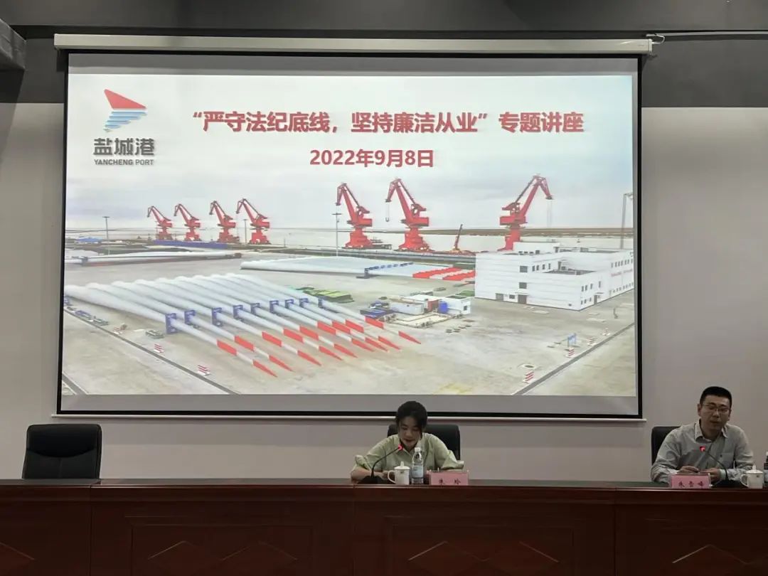 為進一步提升港區全員服務、廉潔自律意識,防范廉政風險,營造風清氣正的干事創業氛圍。近日,鹽城港射陽港區邀請射陽縣紀委相關負責同志來港開展“嚴守法紀底線,堅持廉潔從業”專題講座。