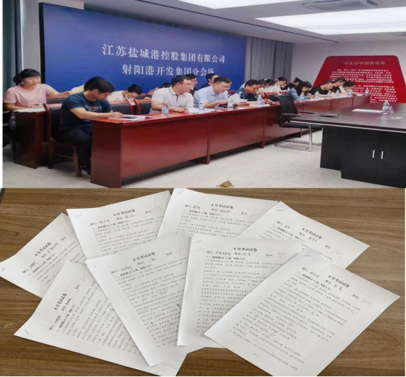 知行合一,篤行致遠。射陽港區推出日應知、周考查的學習方式,每天早上摘編應知應會知識點發布到工作群,供所有員工學習。每周五組織全體員工集中進行閉卷考試,使樂學、善思、篤行成為每一個港區員工的自覺行動指南。