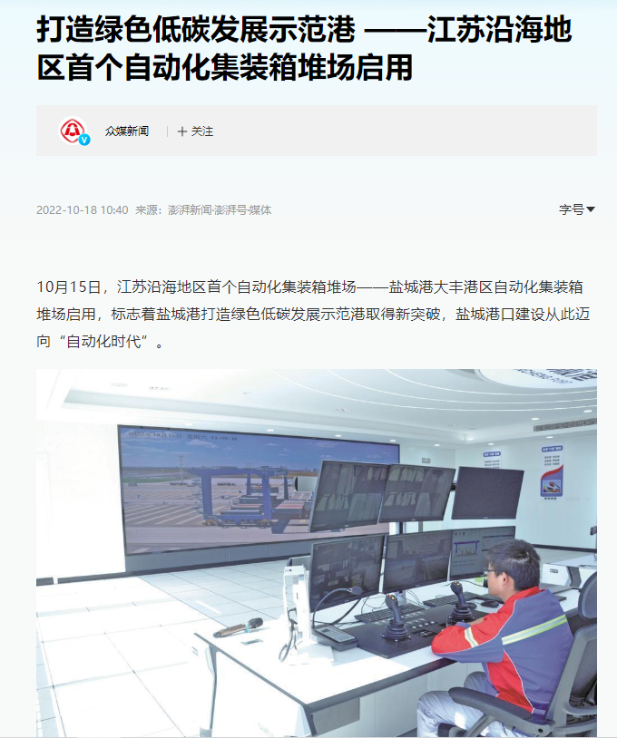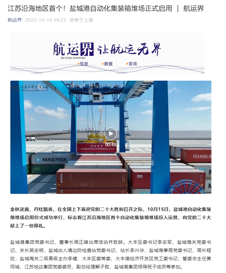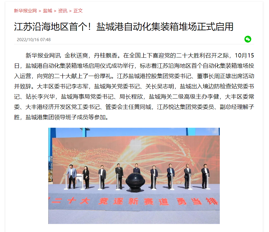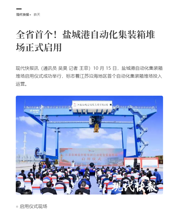 江蘇沿海地區首個自動化集裝箱堆場——鹽城港大豐港區自動化集裝箱堆場正式啟用