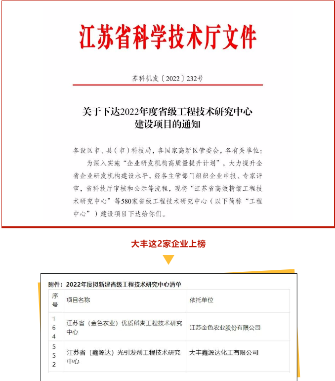 近日,江蘇省科技廳公布了2022年新建省級工程技術(shù)研究中心名單,鹽城港金色農(nóng)業(yè)股份公司的《江蘇?。ń鹕r(nóng)業(yè))優(yōu)質(zhì)稻麥工程技術(shù)研究中心》項目成功入選。