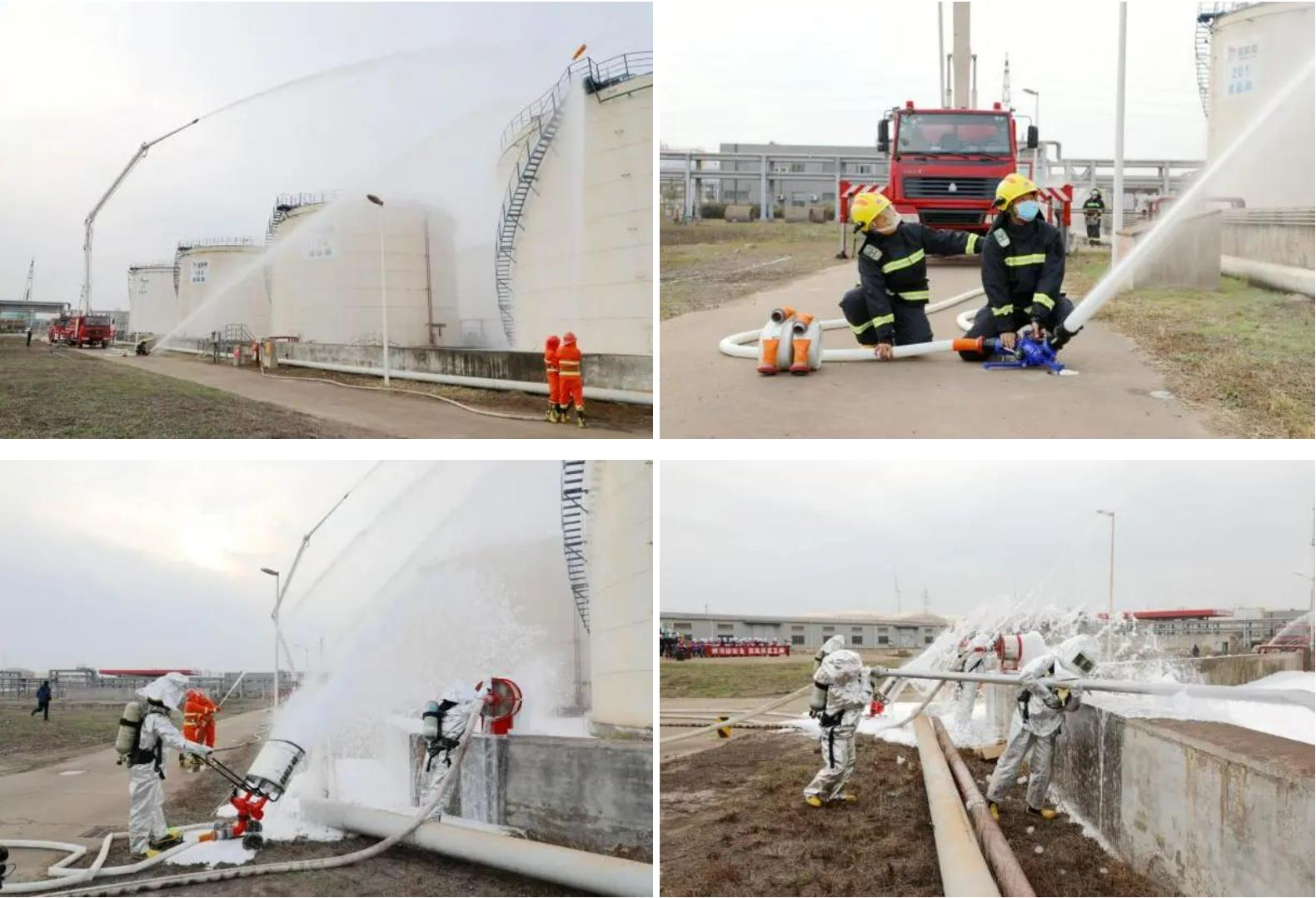 此次演練模擬了成品油101號罐焊接時引發排污池閃爆并著火的消防全過程。演練過程中,各參演應急小組密切配合、各司其職、環環相扣,成功完成了應急救援工作,達到了演練的效果。