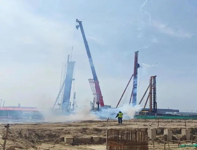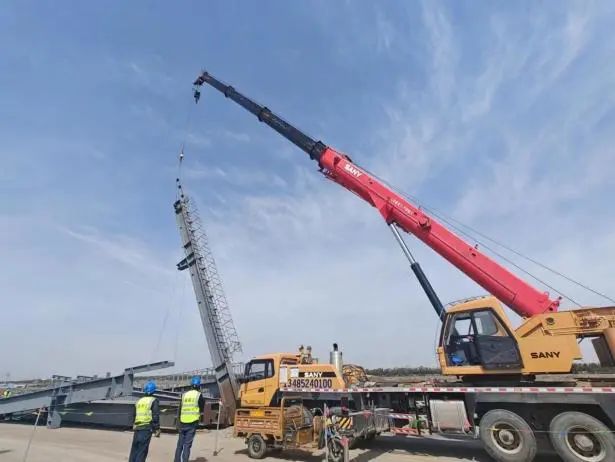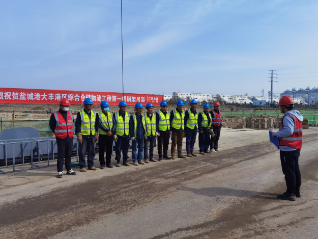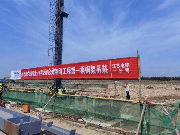 在機(jī)械及司號(hào)聲中,第一根預(yù)制鋼架被徐徐吊起,穩(wěn)穩(wěn)地安裝在承臺(tái)基礎(chǔ)上,由項(xiàng)目咨詢公司代管的大豐港綜合倉儲(chǔ)物流項(xiàng)目鋼結(jié)構(gòu)工程首吊成功完成,標(biāo)志著該項(xiàng)目正式進(jìn)入安裝施工階段,開啟建設(shè)新篇章。