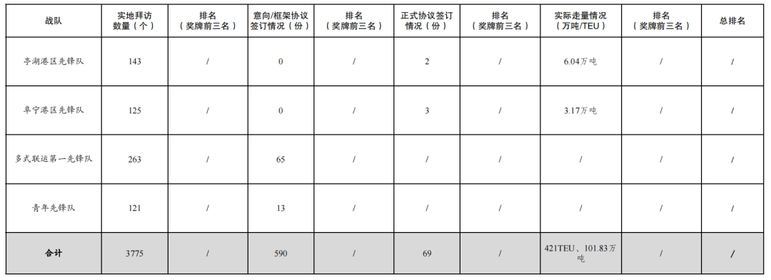 活動開展以來,累計(jì)拜訪客戶數(shù)量3775家,簽訂意向/框架協(xié)議數(shù)量590份,簽訂正式協(xié)議69份,實(shí)際走量421TEU、101.83萬噸。