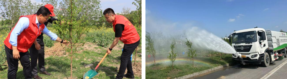 活動現場,大家三人一組,揮鍬挖坑、扶苗填土、提水澆灌,迎著春風干勁十足,合力栽下一株株樹苗。經過一番辛勤勞動,100余株新栽種的水杉迎風挺立、錯落有致,點綴出一派生機盎然的春日景象。