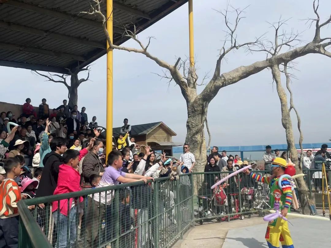 在鹽城港大豐港區動物園內,游客們興奮地向各種動物揮手打招呼,動物們或仰頭眨眼、或深情凝視、或大擺造型,引得游客們一陣陣笑聲。憨態可掬的大熊貓云兒、震生,時兒扭臀散步,時兒啃吃竹葉,時兒臥地大睡,惹得游客們不停地歡呼拍照。同時,工作人員精心籌備的節目也聚集了大量人氣,大家與工作人員熱情互動,現場充滿了一片歡樂祥和的節日氣氛。