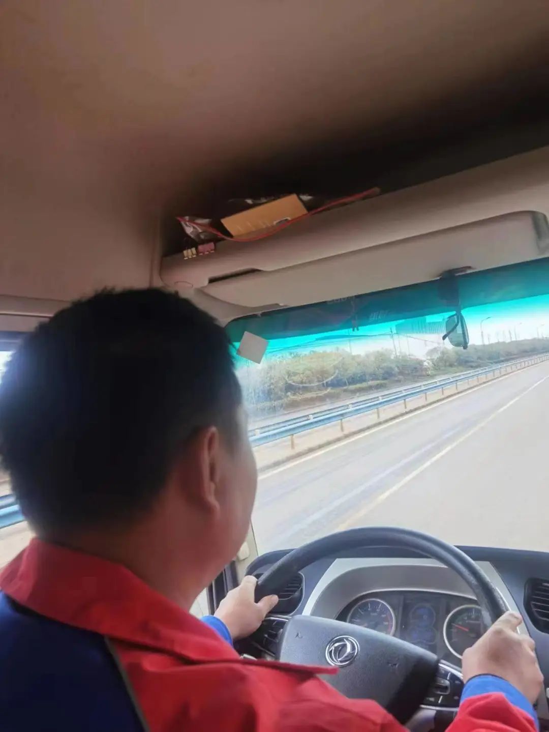 透過洗掃車的窗戶