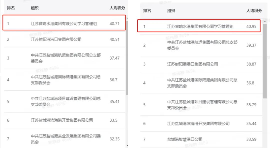 響水港集團(tuán)學(xué)習(xí)組學(xué)習(xí)強(qiáng)國(guó)積分人均41分左右,連續(xù)多日排名集團(tuán)系統(tǒng)學(xué)習(xí)組第一。
