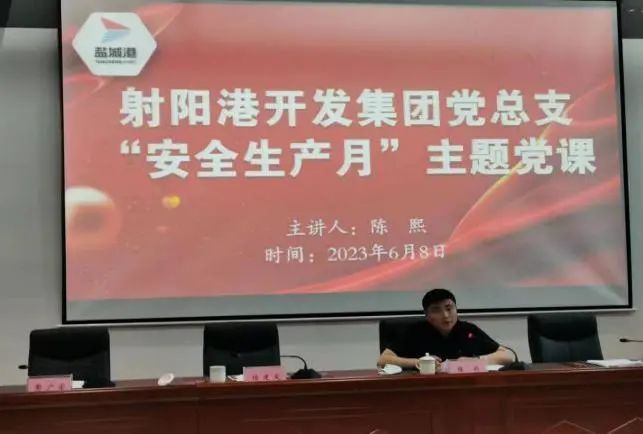 為切實發(fā)揮各級黨組織和廣大黨員在安全生產中的戰(zhàn)斗堡壘作用和先鋒模范作用,近日,射陽港區(qū)黨總支根據近年來習近平總書記關于安全生產的重要論述,結合港區(qū)安全風險點,為全體員工和駐港單位上了一堂安全生產主題黨課,要求與會人員強化防范措施,在狠抓工作落實的同時,嚴格統(tǒng)籌發(fā)展和安全。