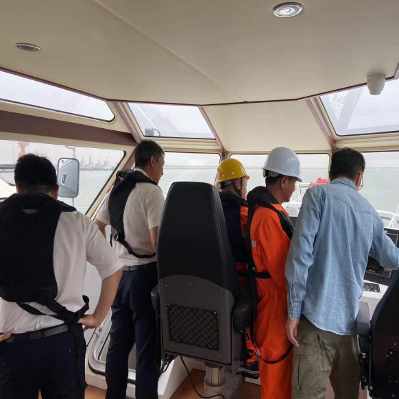 (艇作“的盧”飛快,技如“霹靂”炫睛,引航艇拉著引航員趕往巨輪所在)